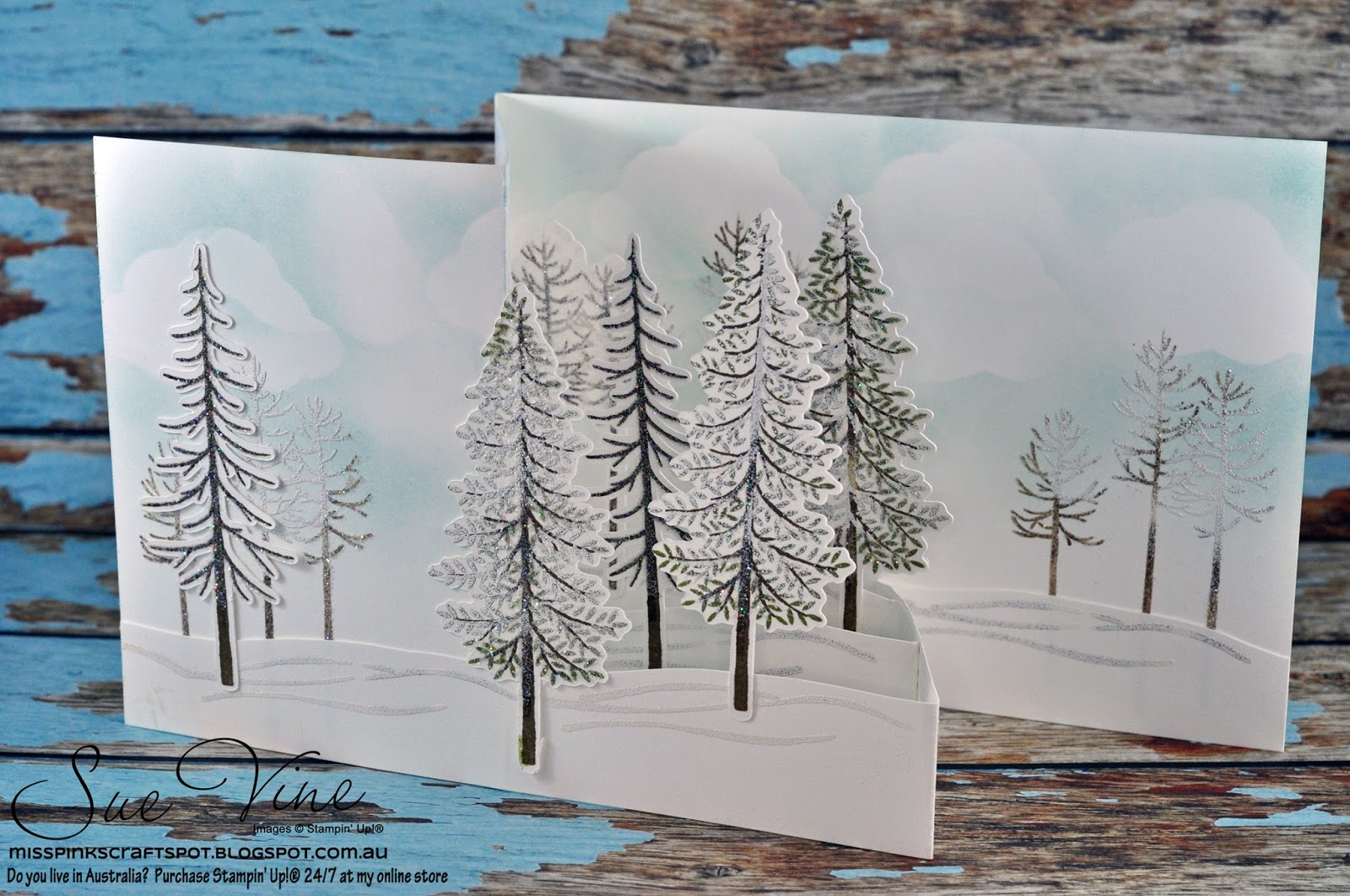 DeleteThis is absolutely stunning! I need to teach myself how to make these fancy folded cards. They look fabulous. I love how dimensional it looks with the trees all staggered like that. Beautiful. xx